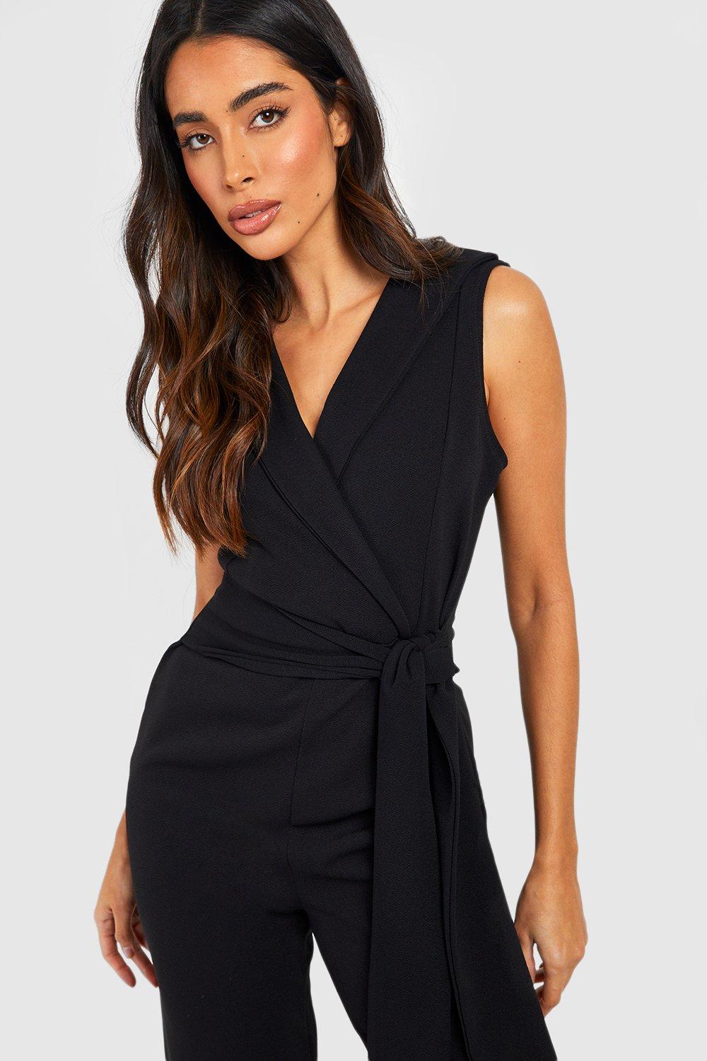 Viscose blend Large Black Shirt Collar Sleeveless Jumpsuit at Rs Very well made.
